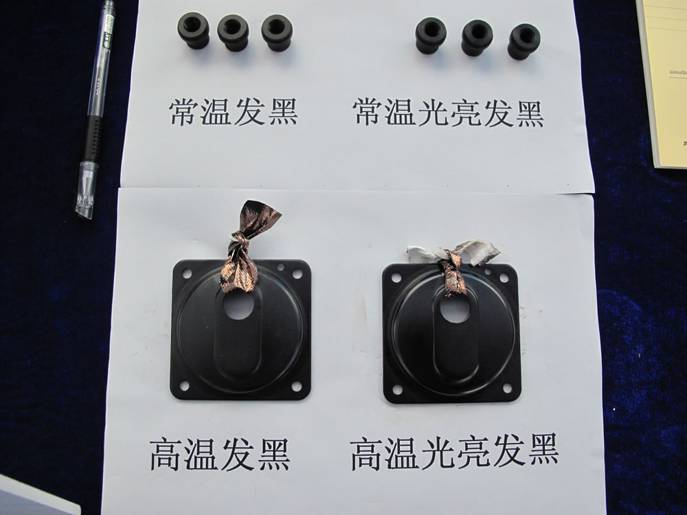 ● 經(jīng)鏡面增光耐蝕劑處理后發(fā)黑的產(chǎn)品,具有外觀烏黑均勻且?guī)в袠O強(qiáng)的光澤感,耐磨性高,防銹能力可達(dá)普通發(fā)黑的2倍。